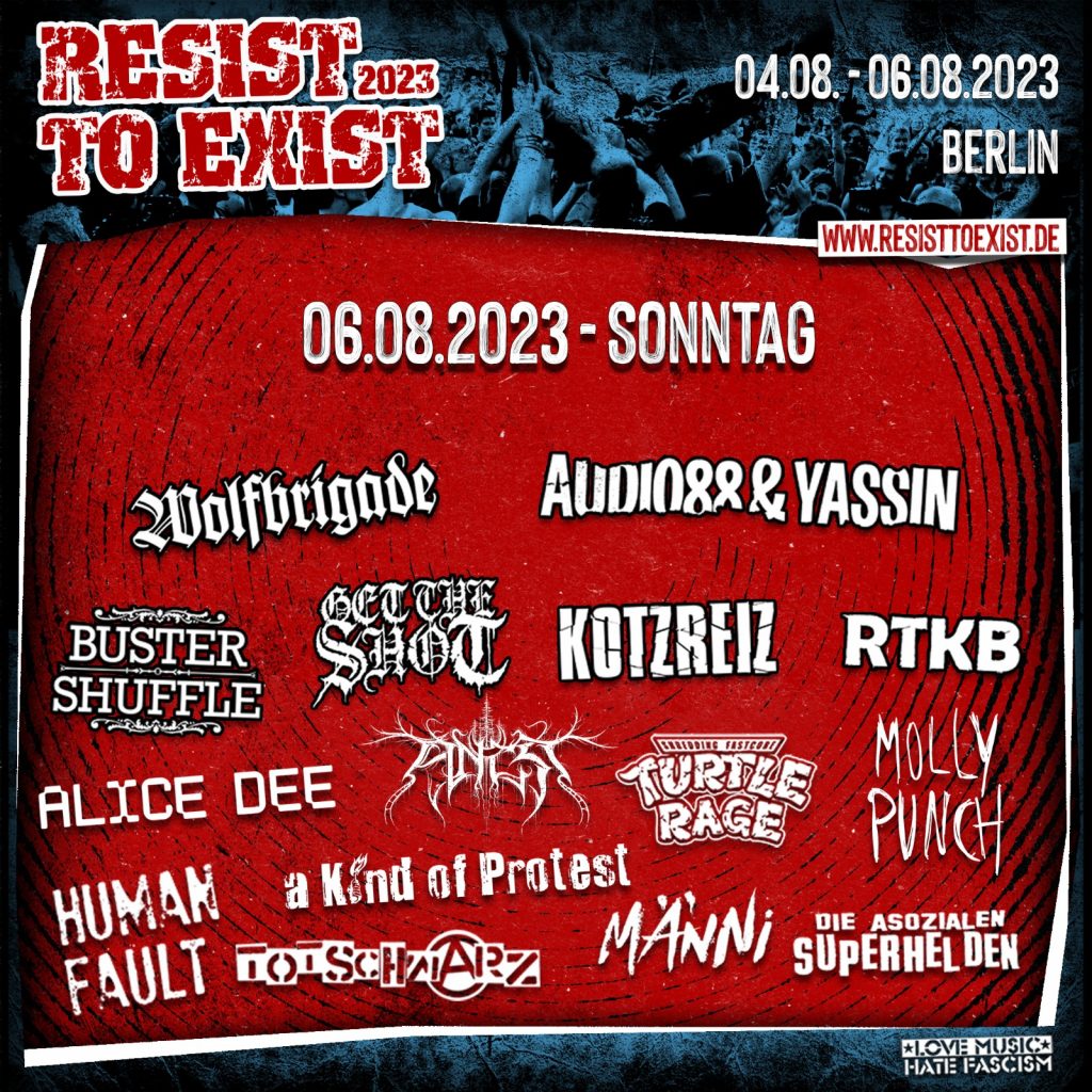 Mit Dabei: WOLFBRIGADE, Audio88 & Yassin, Buster Shuffle, Get The Shot, KOTZREIZ, Lena Stoehrfaktor and Das Rattenkabinett, Alice Dee, Ancst, Turtle Rage, Molly Punch, Human Fault, A Kind Of Protest, Totschwarz, MÄNNI, Die asozialen Superhelden!
