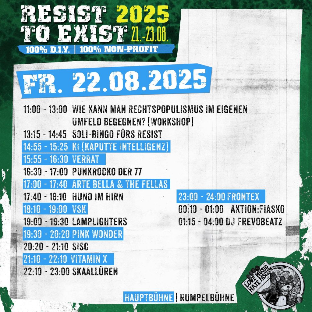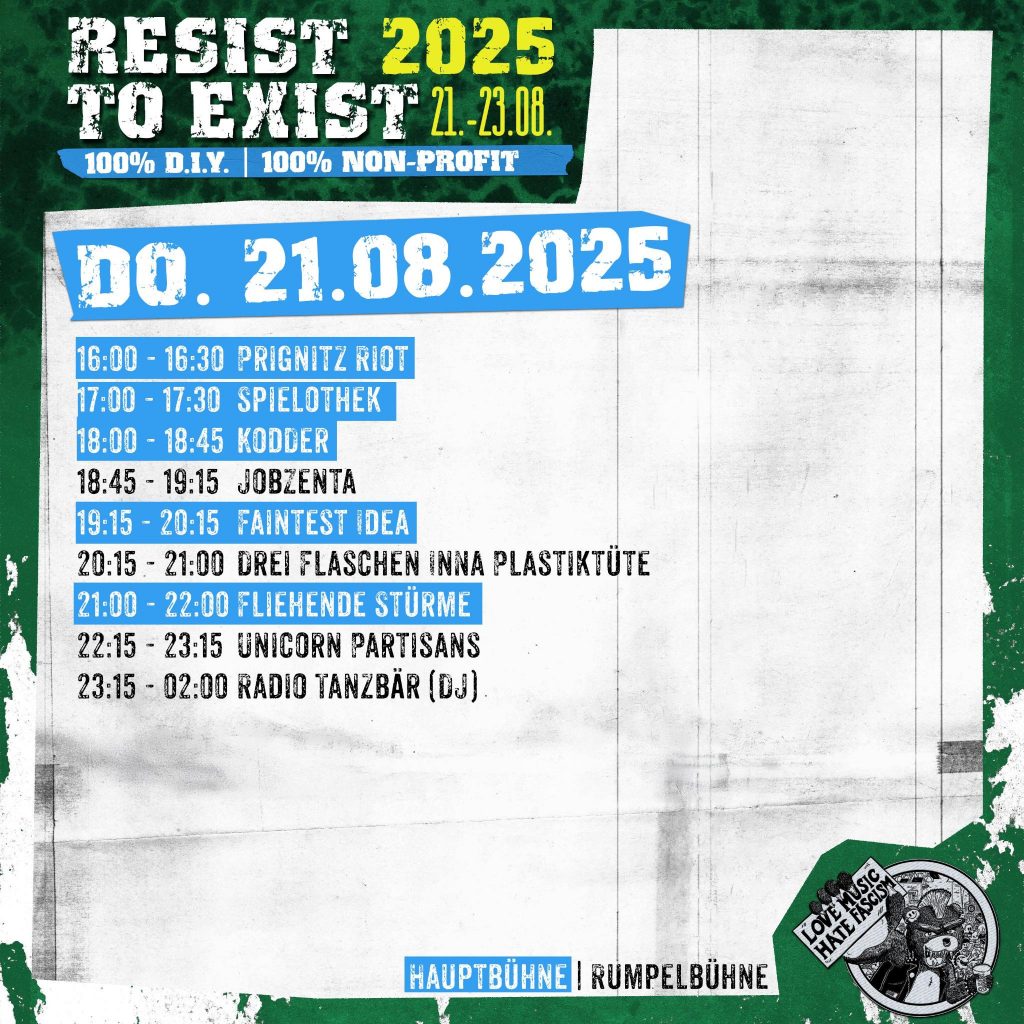 Morgen 12 Uhr öffnen die Türen! 35 Bands, Politvorträge, open stage, aftershows und campen zwischen Bäumen erwarten euch in Perleberg!